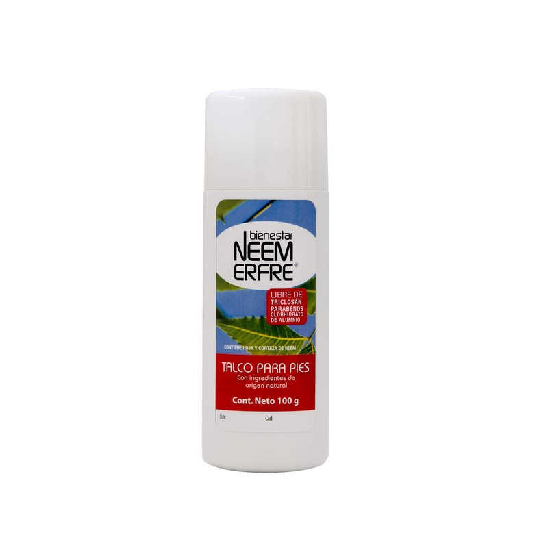 bienestar NEEM ERFRE Talco de Corteza de Neem Pulverzidad- Sin quimicos- Natural- Para toda la familia - Para Pies- 100 g- 3.52 oz
