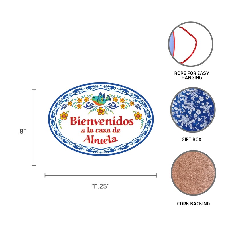 "Bienvenidos a la Casa de Abuela" Latino Traditional Artwork, Ceramic 8.75x6 inches Spanish Front Door Sign with Raised Relief Artwork, Latino Home Decoration & Regalos | by Oktoberfest Haus