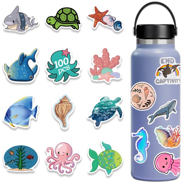 - PACKAGE CONTENTS: Set of 100 unique ocean-themed stickers featuring diverse marine life designs and sea creatures