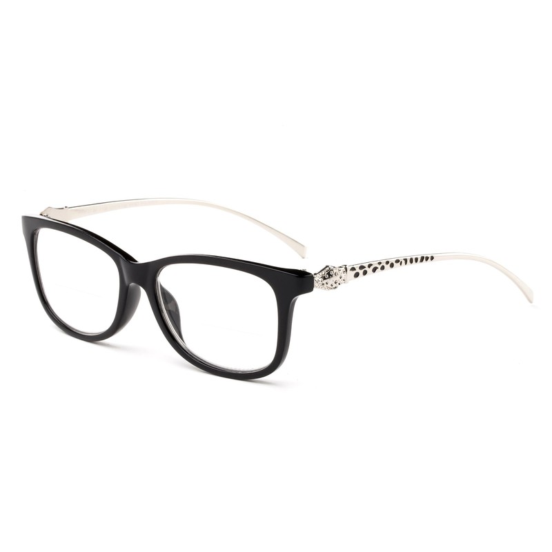 Bifocals Reading Glasses Cat Eye Metal Frame Comfortable Stylish Readers Cheaters Side Temple Print Reading Glasses for Women with Bifocal Lenses