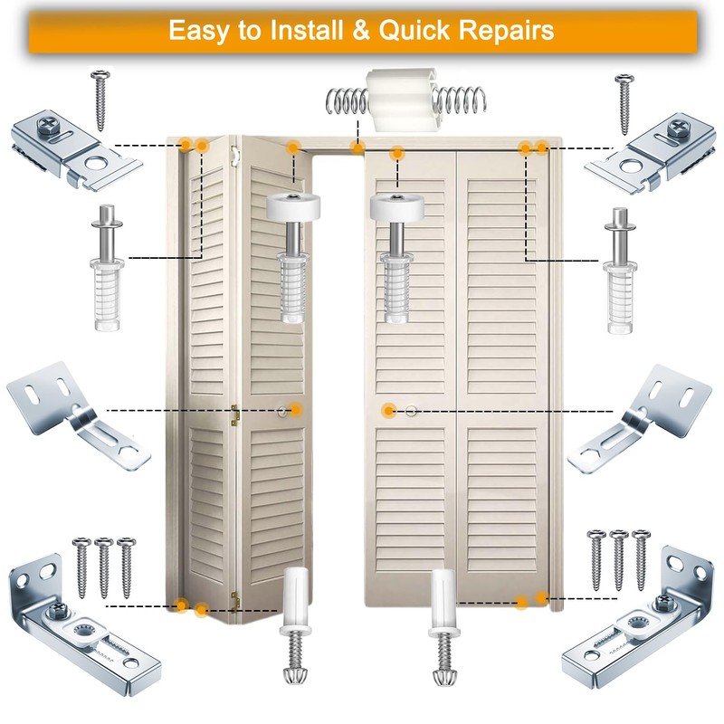 - 【EASY&QUICK TO INSTALLATION】: This folding door hardware repair kit contains all the necessary hardware parts and you don't need to be a professional repairman to complete the installation. We offer a variety of standard size parts to make the repair simple and quick. Let you say goodbye to expensive repairs and save you money.