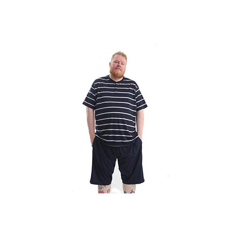 Big and Tall Size PJS Plain Pyjamas Set Plus Size Nightwear - Dark Navy/Grey Stripe (7XL)
