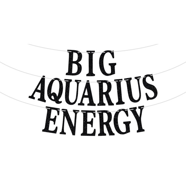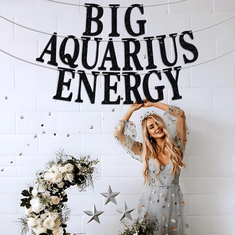 Big Aquarius Energy Banner, temporada de acuario enero/febrero Decoración para tartas de cumpleaños, 12 suministros de decoración para fiestas de cumpleaños, purpurina negra