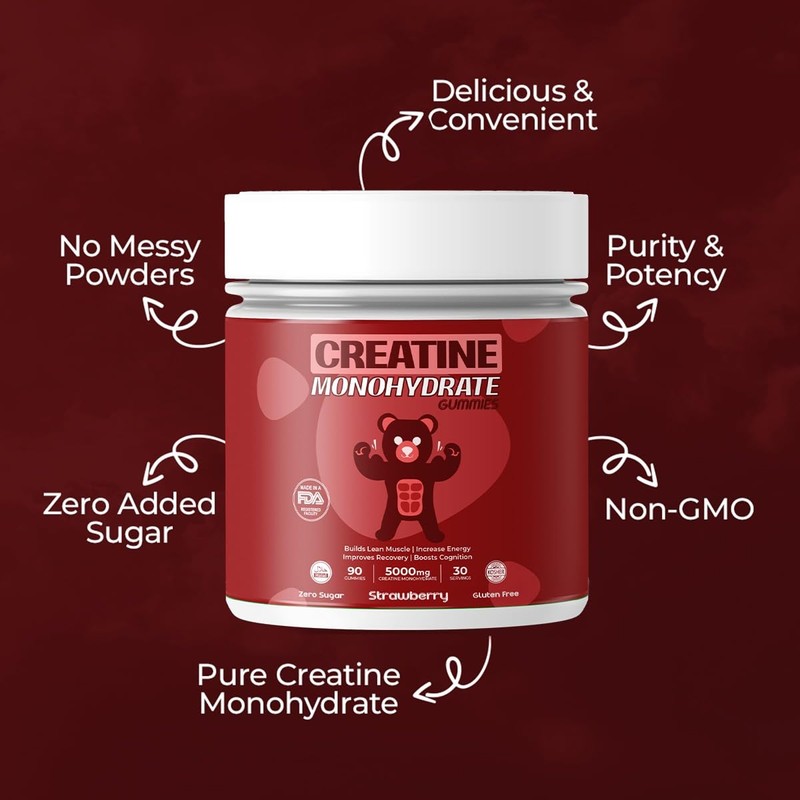 - : Each gummy contains 1.7 grams of high-quality creatine monohydrate, and with 3 gummies per serving, you get a complete 5-gram dose of creatine each day. This ensures you receive the optimal amount for enhancing muscle recovery, strength and improving workout performance.