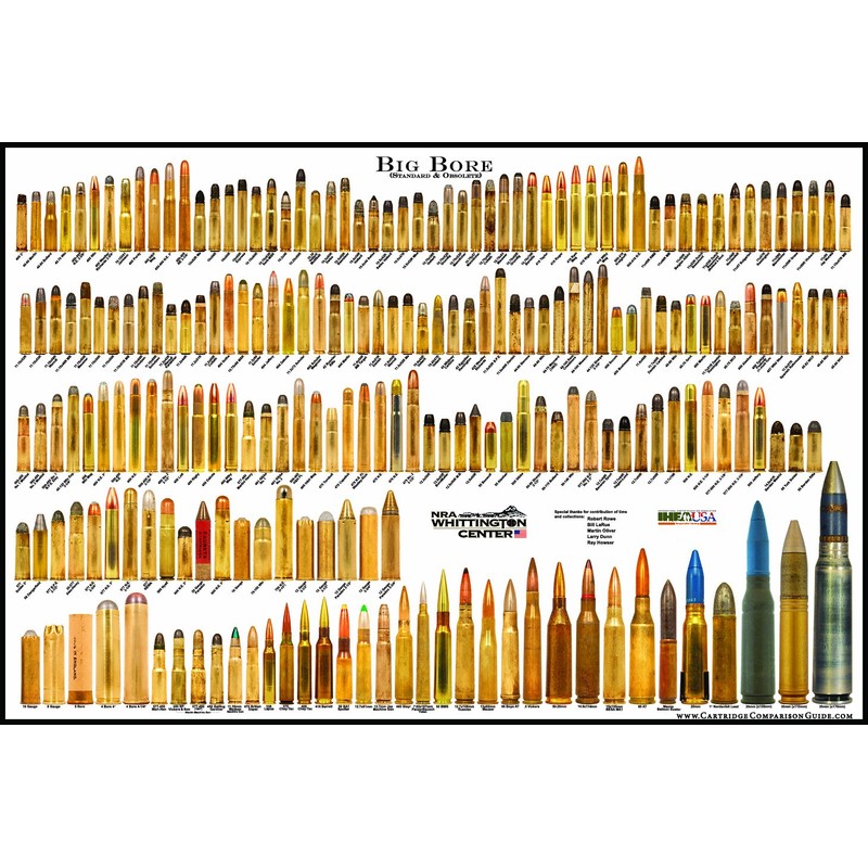 - Includes current and historically significant Big Bore cartridges that were mass produced or very popular respectively.