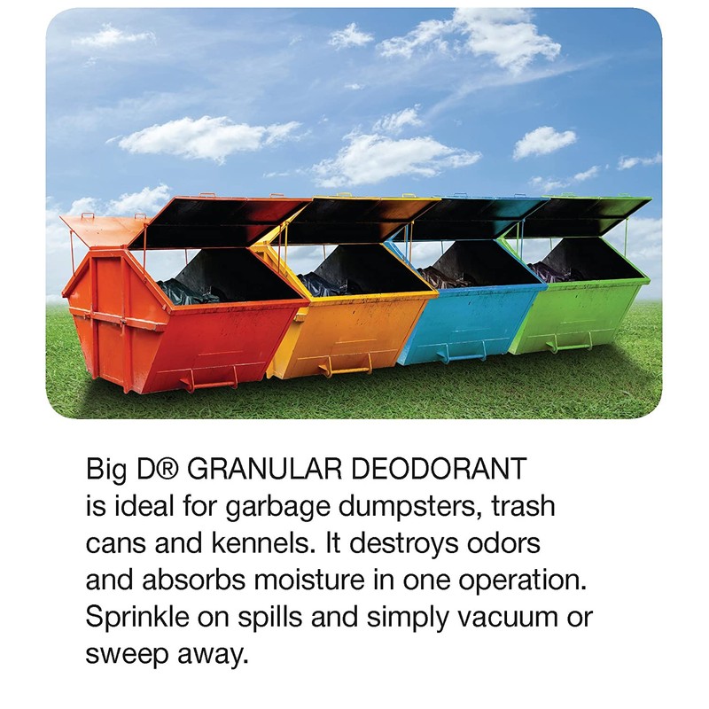 GRANULAR DEODORANT absorbs moisture rapidly, and the Big D deodorant in it
