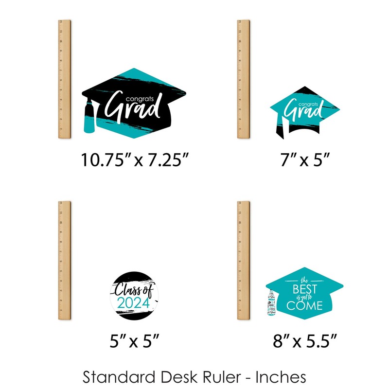 Big Dot of Happiness 2024 Teal Graduation Party Centerpiece Sticks - Showstopper Table Toppers - 35 Pieces