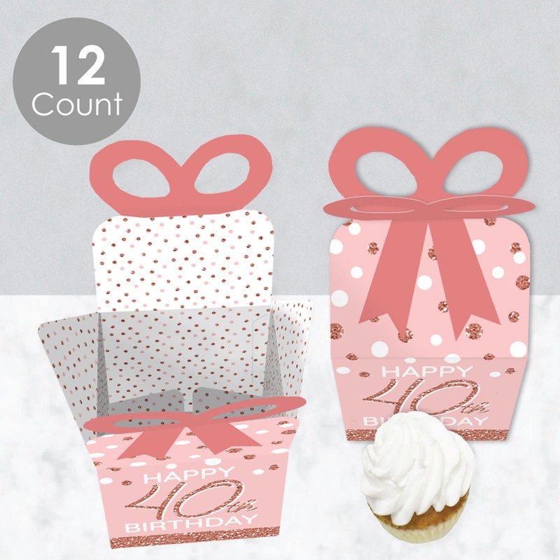 - CUTE GIFT BOXES: This small, closed favor box can be filled with homemade treats (fun cupcake box), party trinkets, or thank you gifts. At the party, have each guest fill their 40th Pink Rose Gold Birthday bow box with snacks from a candy buffet or use as a party loot box. Guests will have fun guessing what surprise each favor gift box contains.
