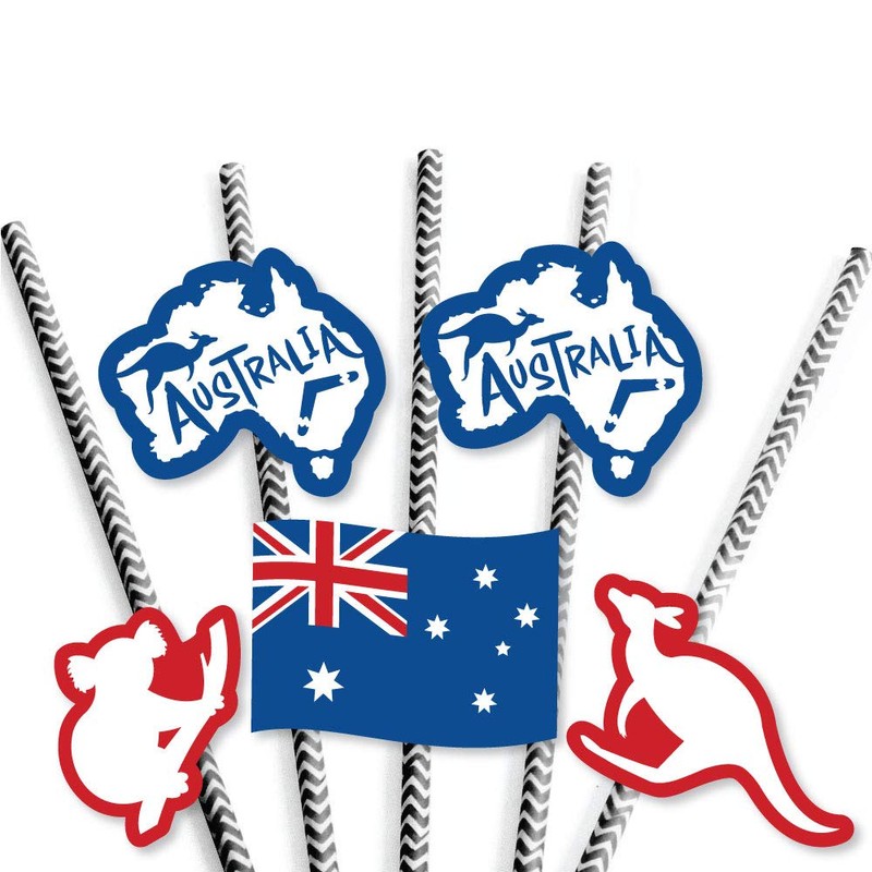 - PREMIUM PARTY SUPPLIES: Australia Day paper cut out straw decorations are professionally printed on heavy-duty card stock paper with a photo-like shine. They are individually inspected and carefully packaged by hand, along with coordinating paper straws. Australia Day Straw Decor will require some easy assembly. Simply adhere the shaped cut outs to the straws using the included clear stickers. Get creative with your DIY G’Day Mate Aussie party decoration ideas!