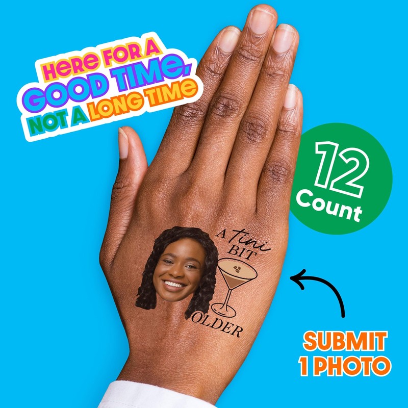 Big Dot of Happiness Custom Photo A Tini Bit Older Espresso Martini Temporary Tattoos, Cocktail Birthday Party Favors - Fun Face Temporary Tattoos - Set of 12