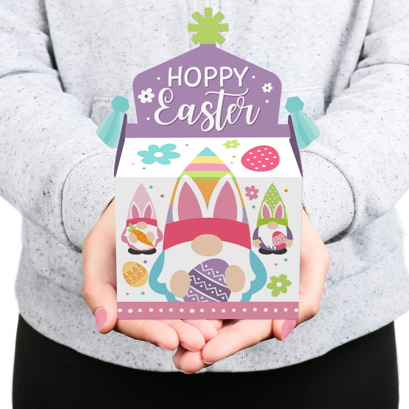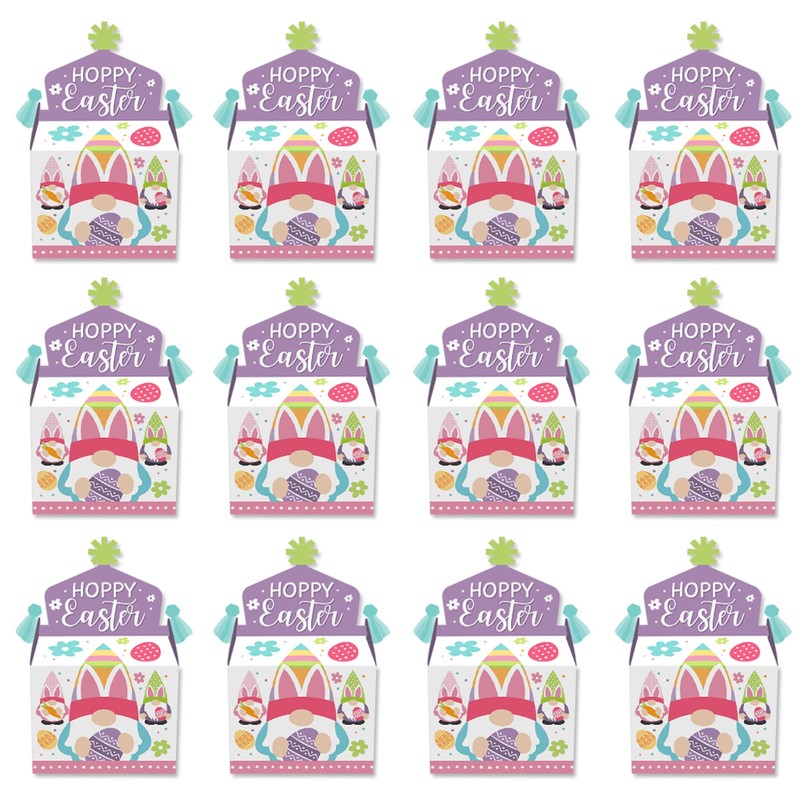 Big Dot of Happiness Easter Gnomes - Treat Box Party Favors - Spring Bunny Party Goodie Gable Boxes - Set of 12