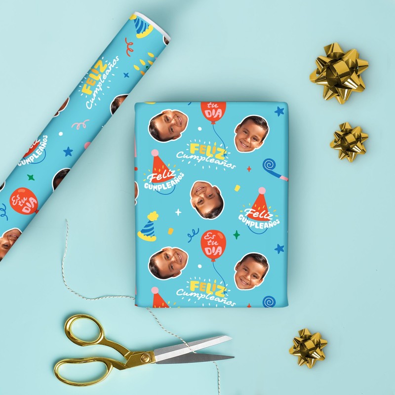 - Feliz Cumpleanos Gift Wrapping: Style your Bday presents with by making it personalized with our vibrant and playful custom photo wrapping paper roll.
