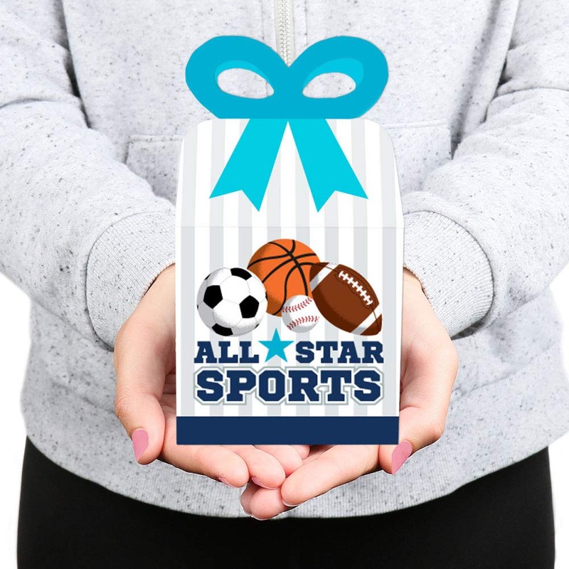 Big Dot of Happiness Go, Fight, Win - Sports - Square Favor Gift Boxes - Baby Shower or Birthday Party Bow Boxes - Set of 12