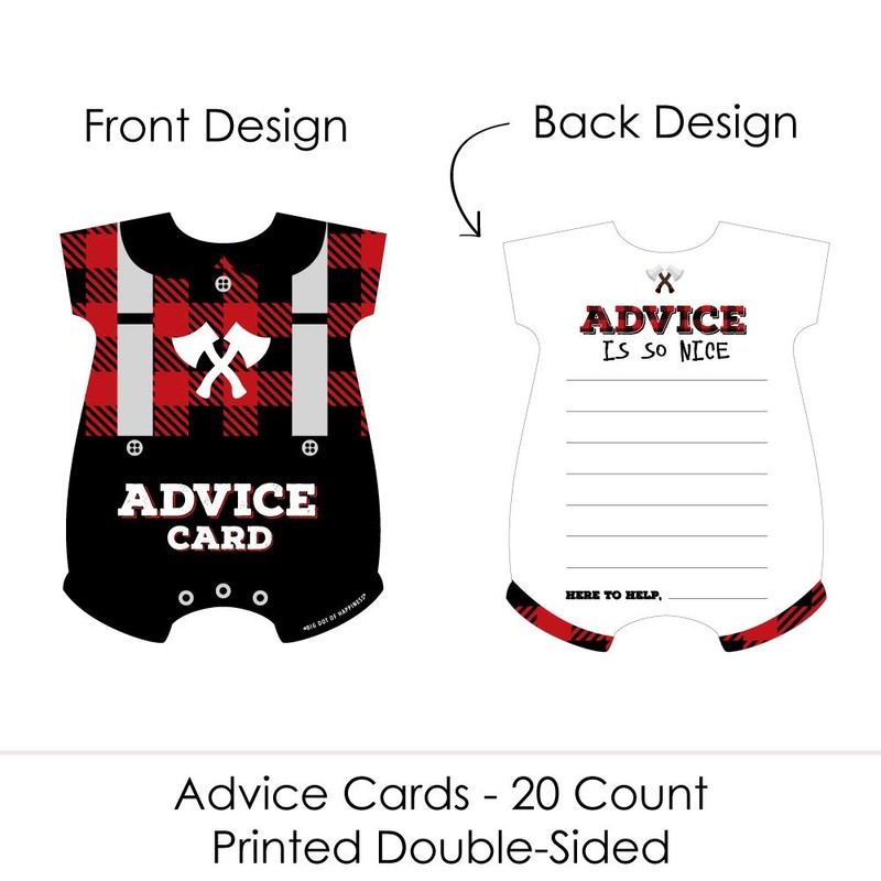 - HIGH-QUALITY PARTY SUPPLIES: Lumberjack - Channel the Flannel Shaped Baby Shower Advice Cards are professionally printed and double-sided on sturdy cardstock paper. They are individually inspected and carefully packaged by hand. This fun baby shower party supply will arrive ready to use. Each shaped advice card measures 5" Wide x 7" Tall.