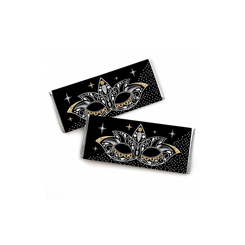 Big Dot of Happiness Masquerade - Candy Bar Wrapper Venetian Mask Party Favors - Set of 24