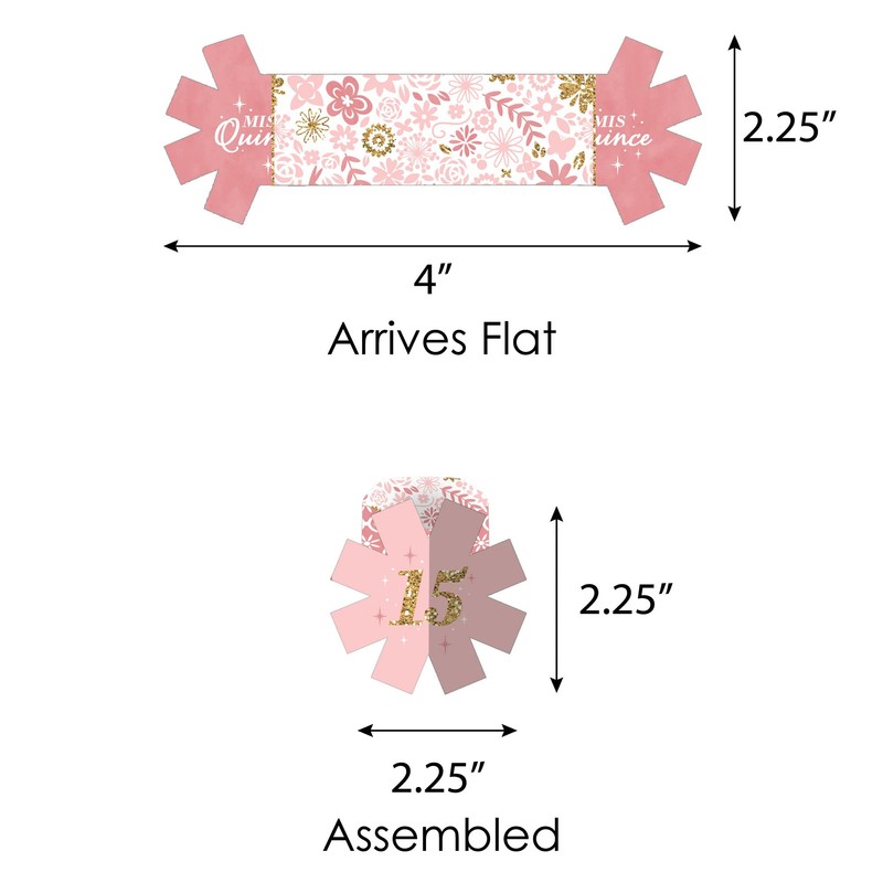 - High-Quality Supply: Mis Quince Anos Napkin Rings are reversible and professionally printed double-sided on sturdy cardstock paper with a photo-like shine. Each paper rings measure 2.25” wide x 2.25” tall when assembled. Napkin Rings arrive flat and will require some easy assembly.