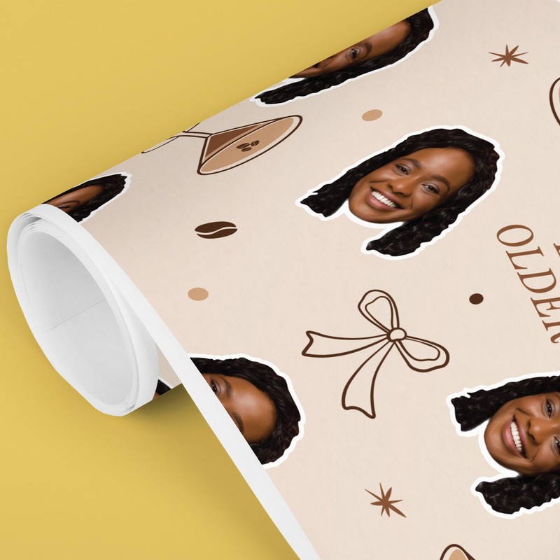Big Dot of Happiness Personalized Photo A Tini Bit Older Espresso Martini Wrapping Paper, Funny Cocktail Birthday Party Gift Wrap with Custom Face Cutout, 24 in x 7 feet, (1 Face, 3 Rolls)