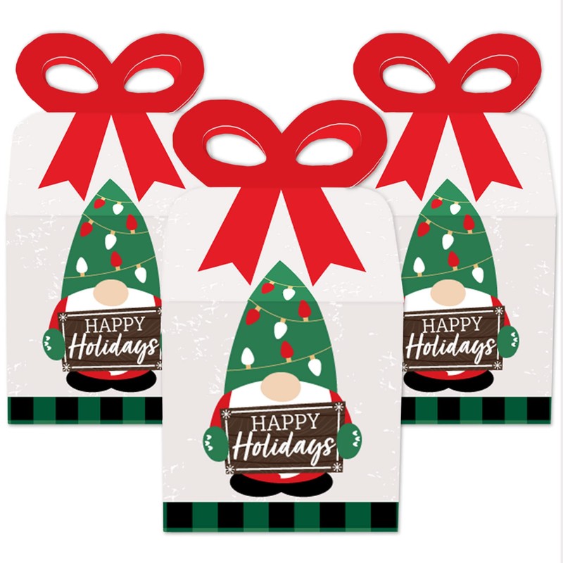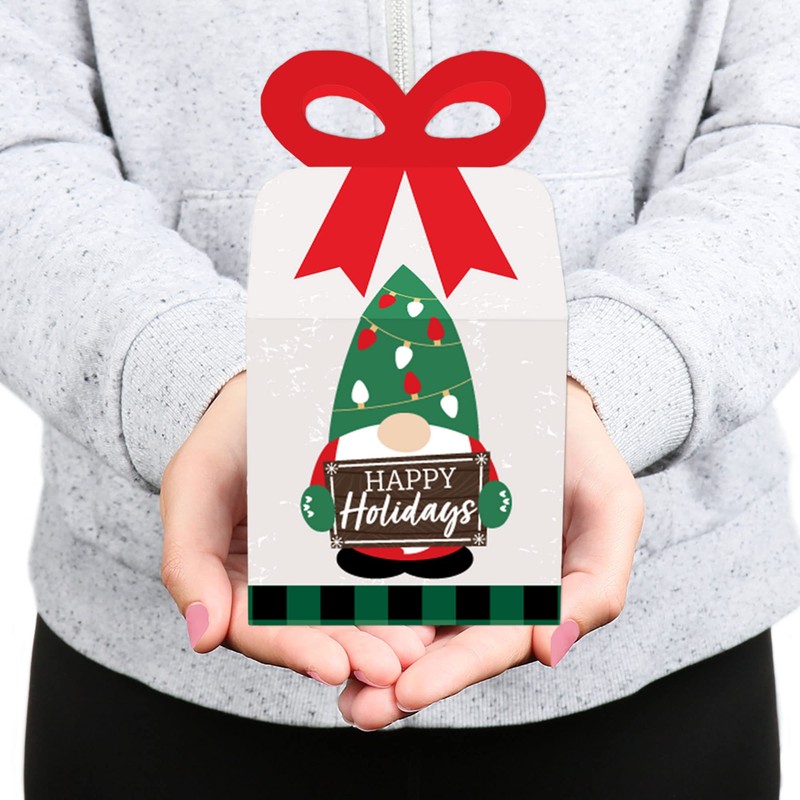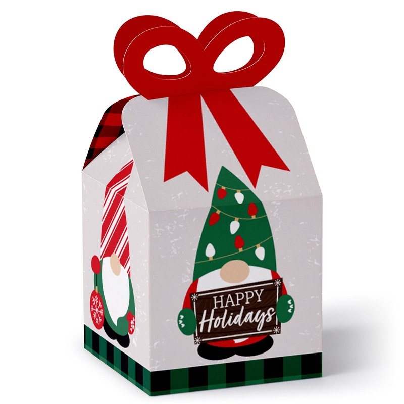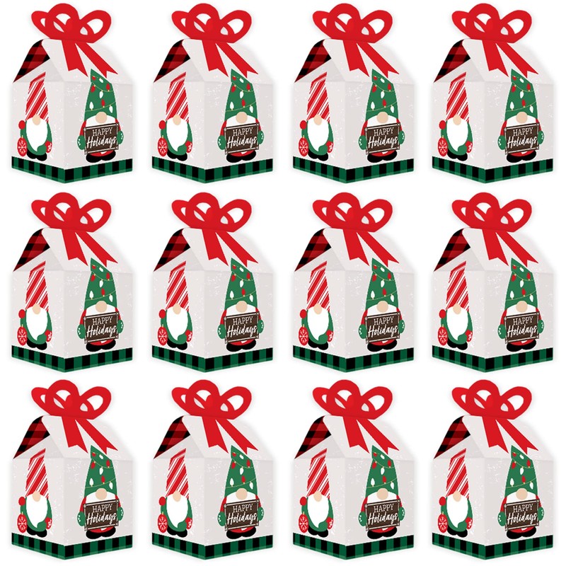 Big Dot of Happiness Red and Green Holiday Gnomes - Square Favor Gift Boxes - Christmas Party Bow Boxes - Set of 12