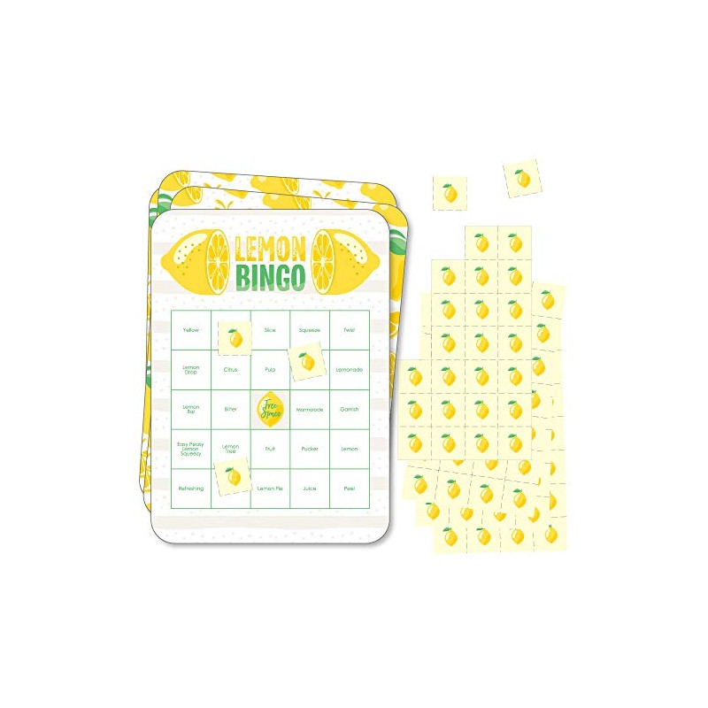 Big Dot of Happiness So Fresh - Lemon - Bingo Cards and Markers - Citrus Lemonade Party Bingo Game - Set of 18
