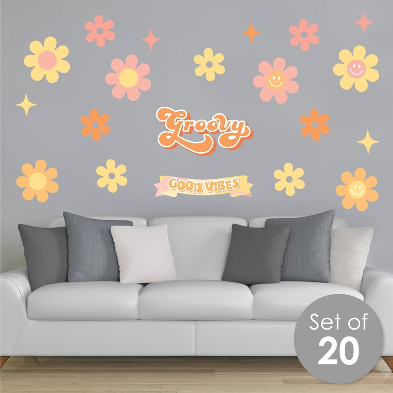 Big Dot of Happiness Stay Groovy - Peel and Stick Boho Floral Home Decor Vinyl Wall Art Stickers - Wall Decals - Set of 20