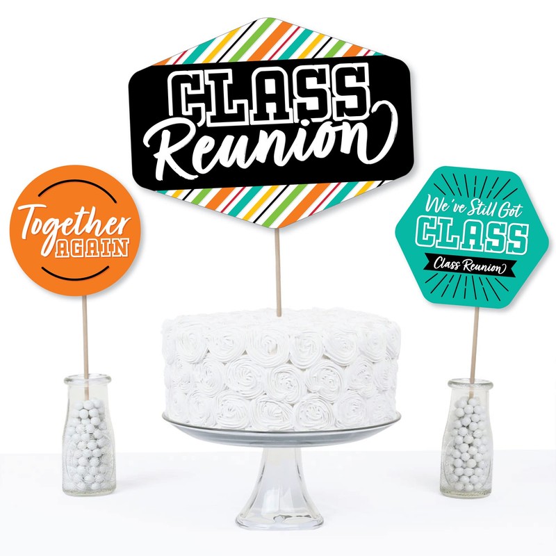 - Still Got Class Centerpiece Sticks INCLUDES 15 class reunion table toppers in three different shapes, 15 table topper sticks and stickers for easy assembly. Class reunion table decorations are perfect for a high school reunion event.