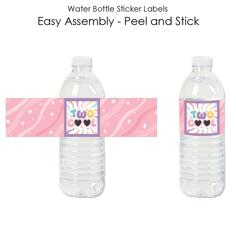- Unique Beverage Bar: Two Cool - Girl Water Bottle Labels will make coordinated beverage area at your Pastel 2nd Birthday Party. Add Two Cool - Girl Water Bottle Labels to standard water bottles, mini water bottles, soda bottles and single-serving juice containers. Water bottle labels can also be used on cylinder containers to create Sunglasses centerpieces.