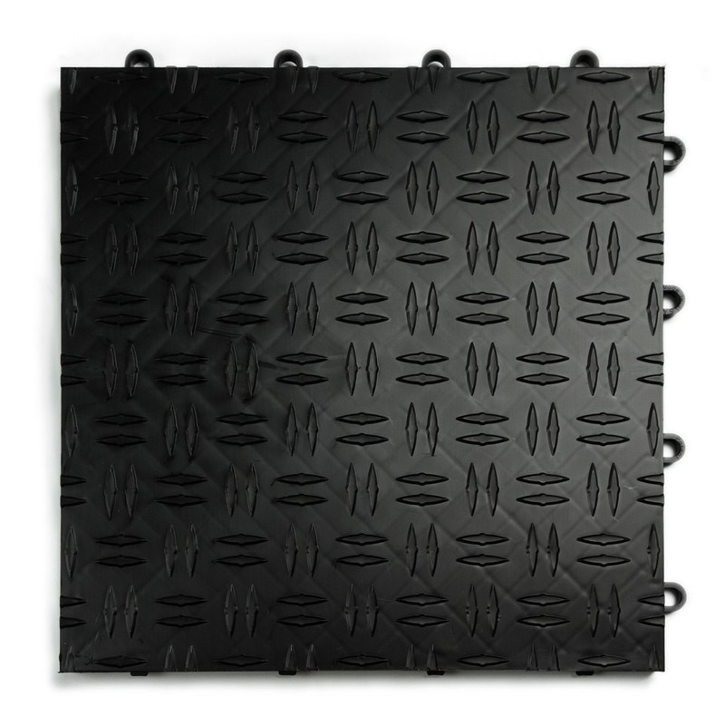 Big Floors GarageTrac Diamond, Interlocking Non-Slip Garage Flooring Tile, Durable, Modular, Heavy-Duty Copolymer, Easy Install (Black, 24 Pack of 12 x 12" Tiles)