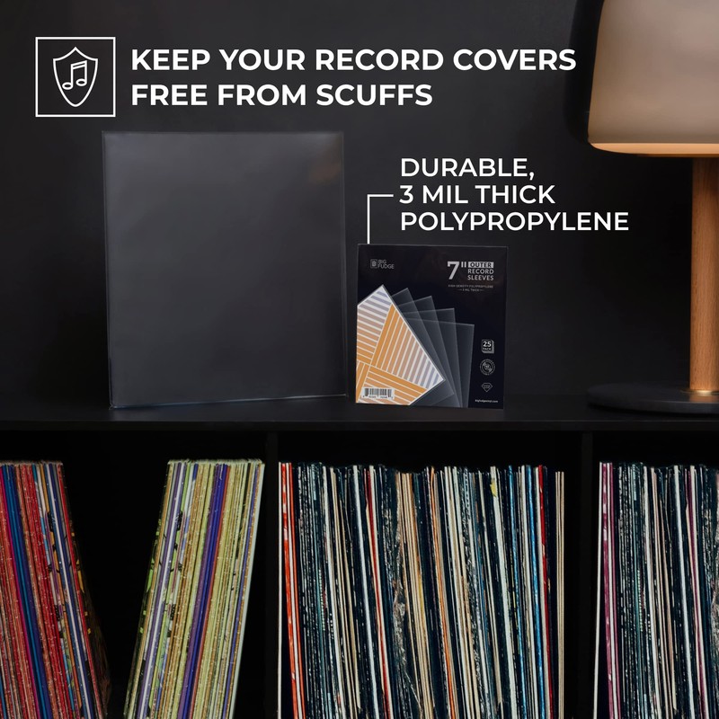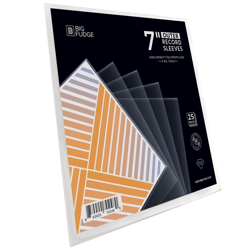 BIG FUDGE 25x Vinyl Record Outer Sleeves 7 inch | Durable & Wrinkle-Free | Crystal Clear & Made from High-Density Polypropylene | Best Vinyl Covers for LPs & Singles | 3 mil Thick, 7.42" x 7.42