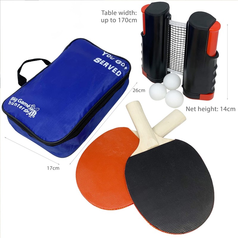 Big Game Hunters Table Tennis Set | Expanding Retractable Premium Net, Bats, Balls in Oxford Cloth Bag | All-in-One Kit | Fits Any Table | Great Gift & Indoor/Outdoor Game