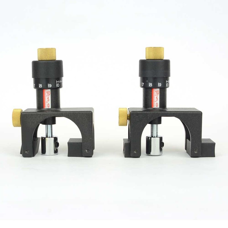 Set planer knives quickly and accurately with these magnetized setting jigs. The jig holds knives tightly in position while both hands are free to adjust the gibs and cutter head. Keeps knives in perfect alignment while setting. Fits planer knives from 12-Inch to 26-Inch. Pair comes in wood box.