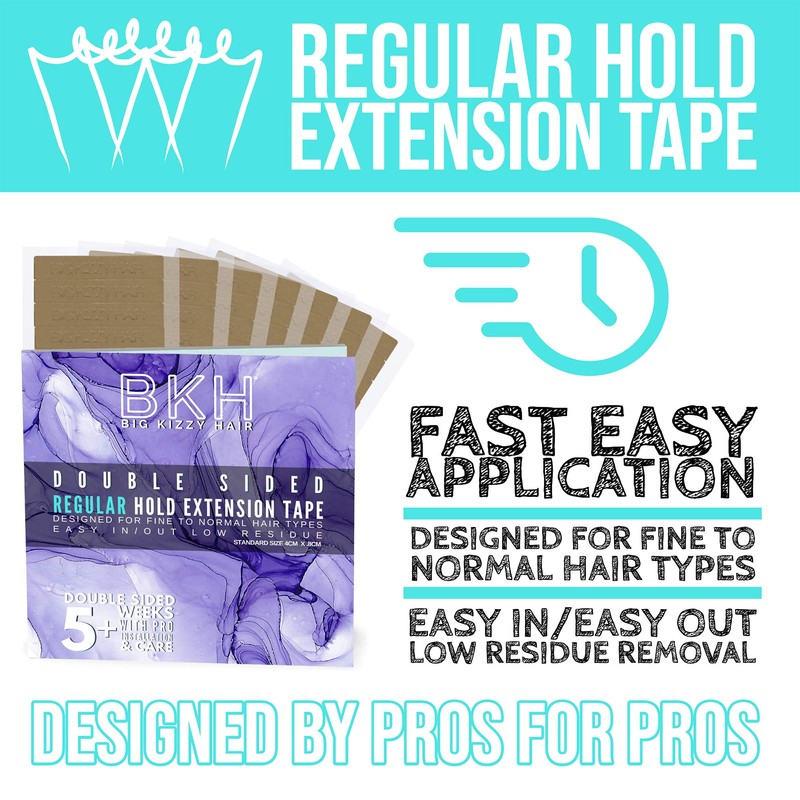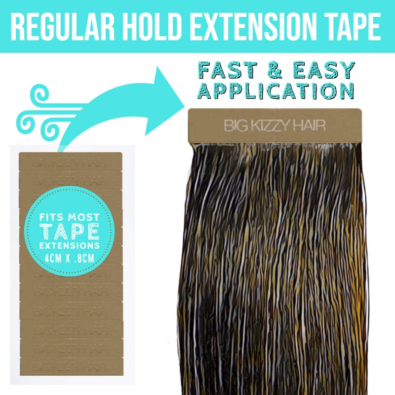 - 72 TABS of Regular HOLD HAIR EXTENSION TAPE: Designed for normal everyday wear. Recommended for clients with fine and/or thin hair. Lasts 5+ weeks with proper installation and care. Easy in/out - very little removal residue. Standard Size 4cm x 8cm Hair Extension Replacement Tape Ultra thin & lightweight tape - extremely durable when properly applied. Compatible with most tape in hair extensions. Double Sided Tape.