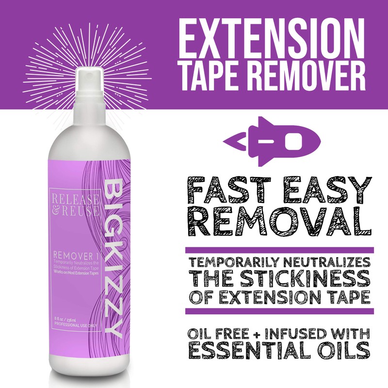 - 8oz PROFESSIONAL SALON QUALITY EXTENSION TAPE REMOVER: Nervous about tape extension adhesive pulling or ripping out your hair? Don't waste your time trying the others - Release & Reuse is the only remover that temporarily neutralizes the stickiness of extension tape so you don't experience HAIR LOSS when taking them out.