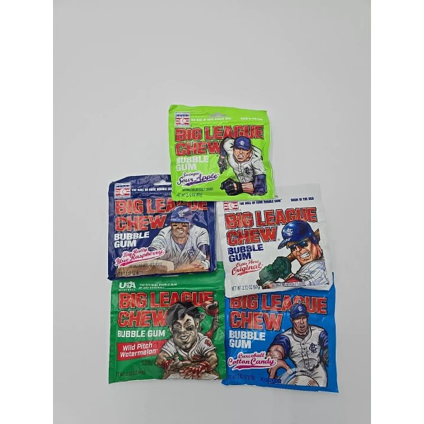 Big League Chew 5 Packs | Big League Chew Variety Flavor Bubble Gum | 2.12oz | One Of Each