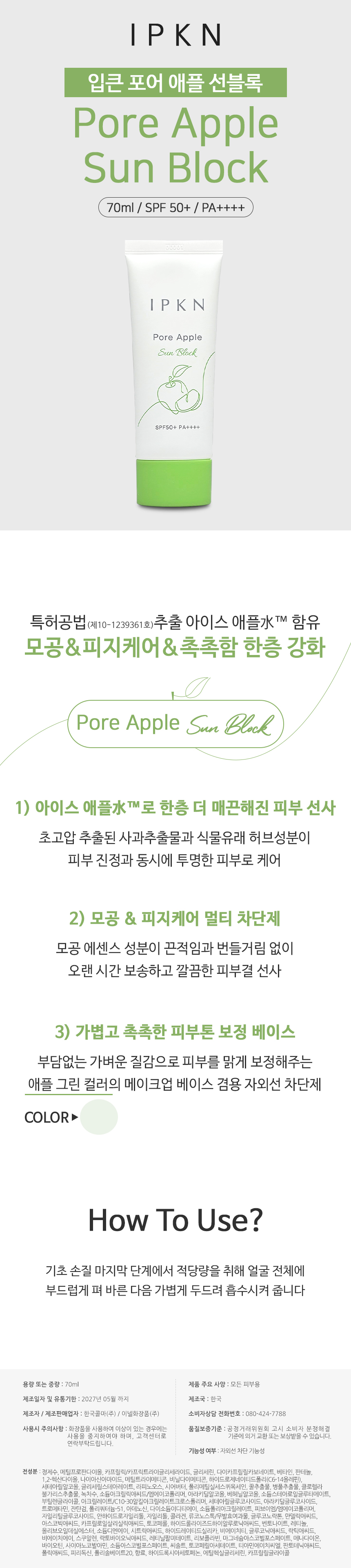 입큰 포어 애플 선블록 70ml