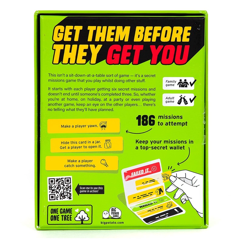 - FIRST TO THREE WINS: This family party game doesn't end until someone completes three missions, which could happen at any time - so don't let your guard down!