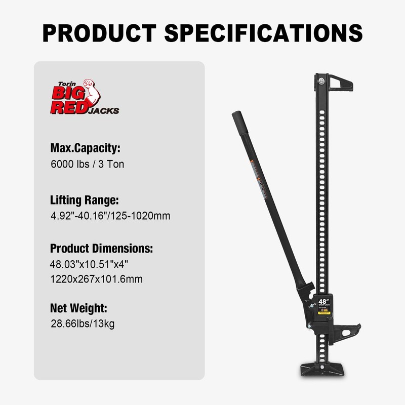 BIG RED ATR6501BR Torin 48" Ratcheting Off Road Utility Farm Jack: 3 Ton (6,000 lb) Capacity, Black