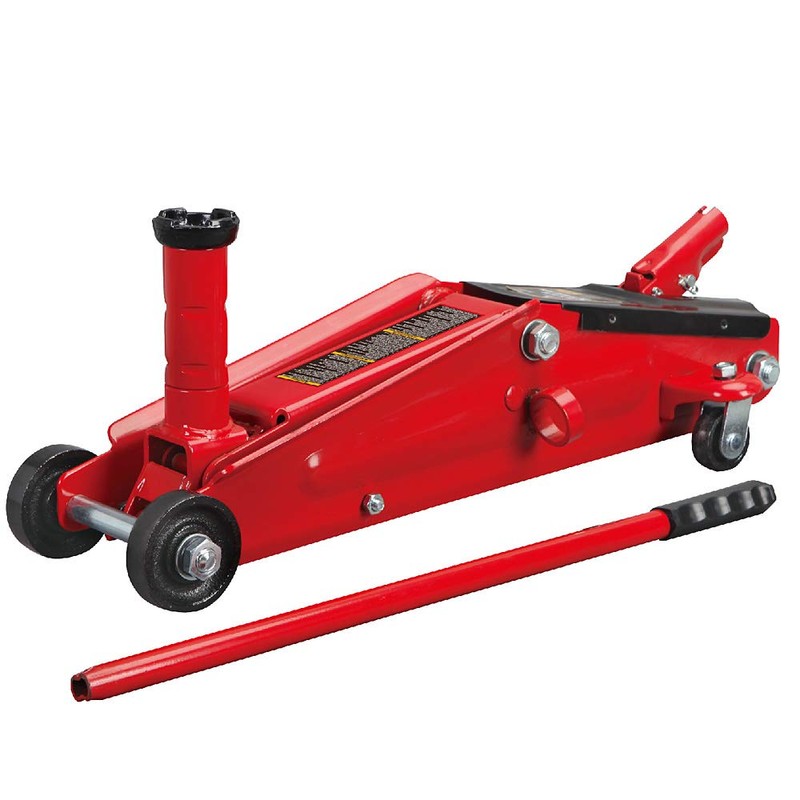 - Hydraulic trolley floor jack is constructed with heavy duty steel, providing long term durability with an industrial luster