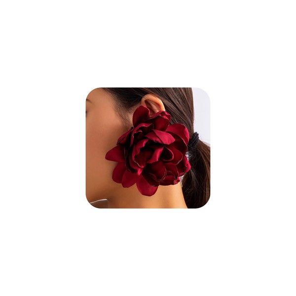 Big Rose Fabric Dangling Statement Earrings Exaggerated Large Cloth Camellia Flowers Dangle Drop Earring for Women Trendy Red Wedding Prom Jewelry Gift (Red)