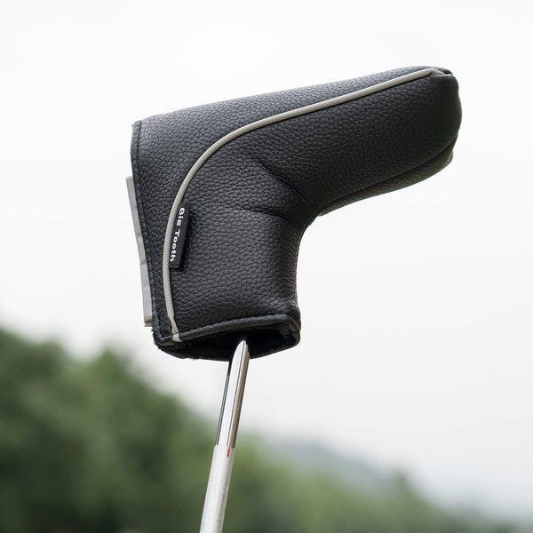Big Teeth Putter Cover Premium Solid Color Cover Pin Magnet Golf Putter Cover Pin Blade Head Cover (Black)