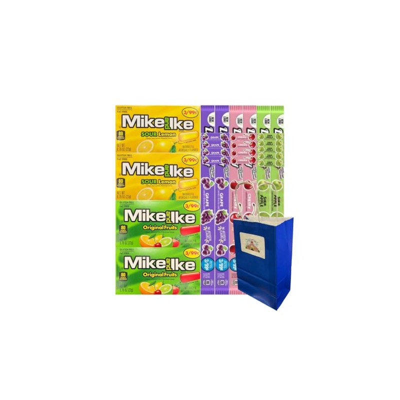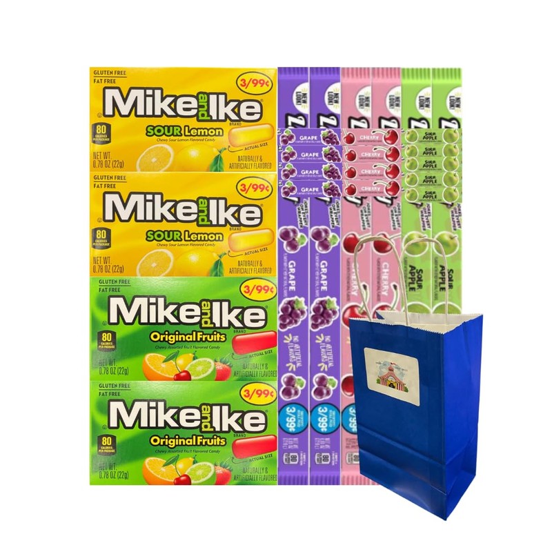 - Assorted Flavor Mix – Features a mix of fan-favorite candies like Mike and Ike Original Fruits, Sour Lemon, and fruity taffy ropes in grape, cherry, and sour apple.