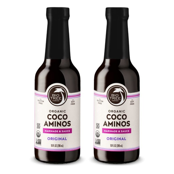 Big Tree Farms Organic Coco Aminos - Liquid Coconut Aminos, Soy-Free Sauce, Low Sodium, Soy Alternative, Gluten Free, Kosher, Warmly Umami, Marinade & Sauce, Non-GMO - Original, 10 Fl Oz (Pack of 2)