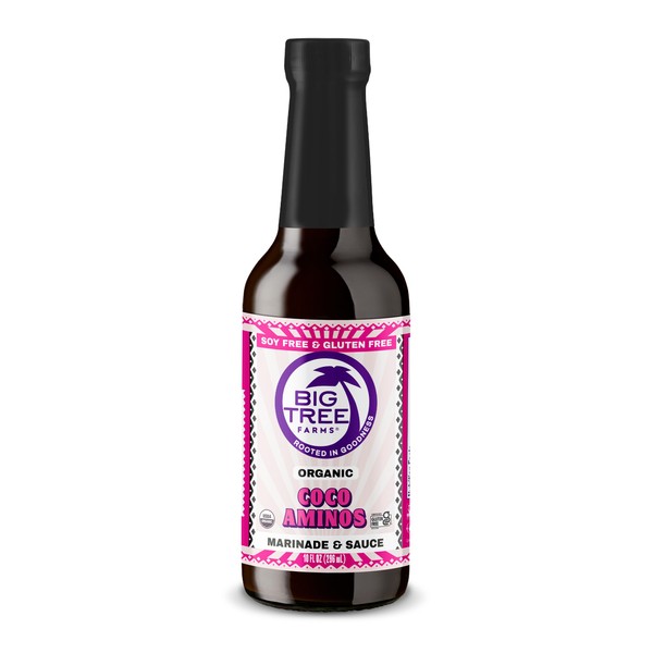 Big Tree Farms Organic Coco Aminos - Liquid Coconut Aminos, Soy-Free Sauce, Low Sodium, Soy Alternative, Gluten Free, Kosher, Warmly Umami, Marinade & Sauce, Non-GMO - Original, 10 Fl Oz (Pack of 1)