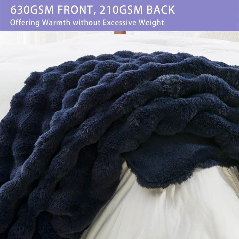 Bigacogo Faux Fur Throw Blanket for Couch, Fuzzy Soft Plush Thick Warm Bubble Blankets for Sofa Bed Living Room Décor, Cute Luxury Cozy Fluffy Throw Gift for Women Girls, 50"x60", Navy Blue