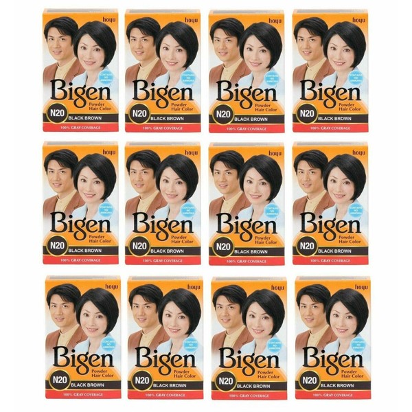 BIGEN Powder Hair Color, 6g - Black Brown N20 (Pack of 12)