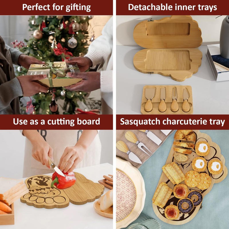- ● Interesting Sasquatch Shape Design: This personalized cutting board is inspired by the design of Bigfoot. Interesting and unique, it's also a great idea for kitchen decoration. It contains four cheese knives to meet your various needs.