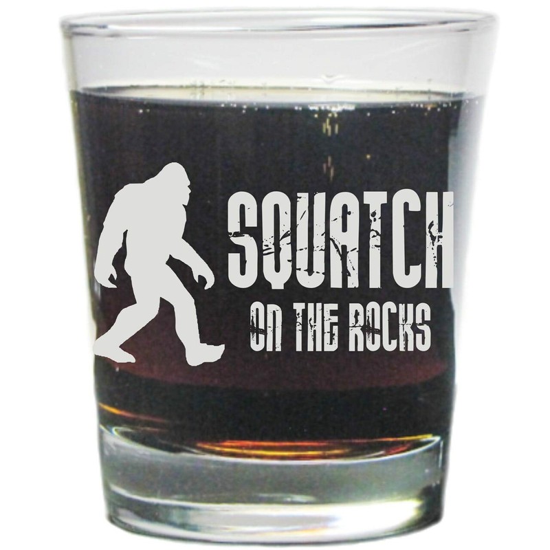 Bigfoot"Squatch On The Rocks" - Engraved Hi-Ball Rocks Glass - 13 Oz - Permanently Etched - Fun & Unique Gift!
