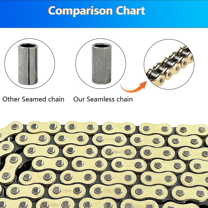 - Seamless Steel Pipe Chain: 428 chain made of highest grade seamless steel, excellent tensile resistance, high strength, not easy to break, wear-resistant, ensure long-lasting lifespan