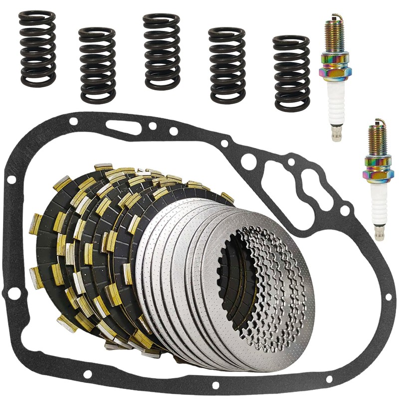 - Items Included: 9× clutch friction plate; 8×clutch steel plate; 5×heavy duty springs; 1×clutch gasket; 2×spark plug