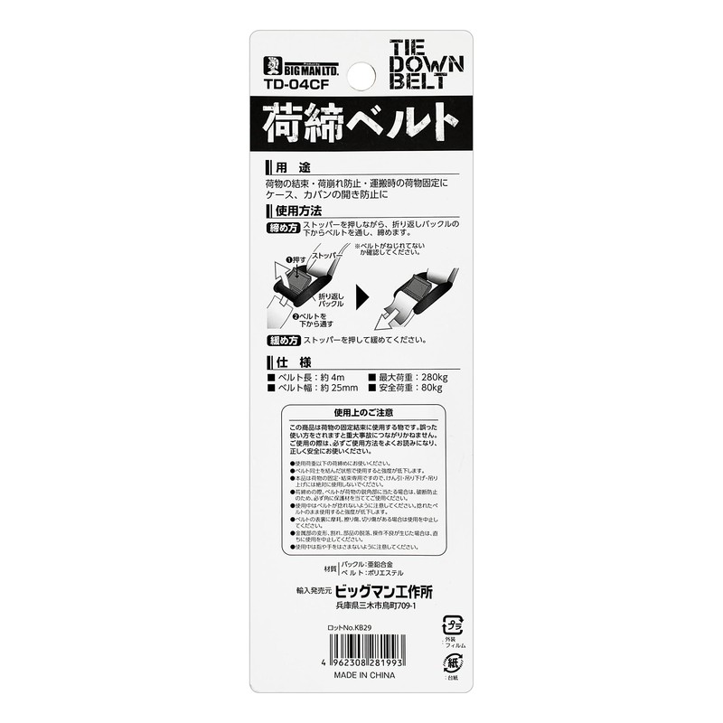 Bigman Cargo Tightening Belt, Fastening Belt, Fixed Band, Safe Load 176.4 lbs (80 kg), Maximum Load 617.6 lbs (280 kg), Camouflage (Belt Length 1.6 ft (4 m) x Width 1.0 inches (25 mm)