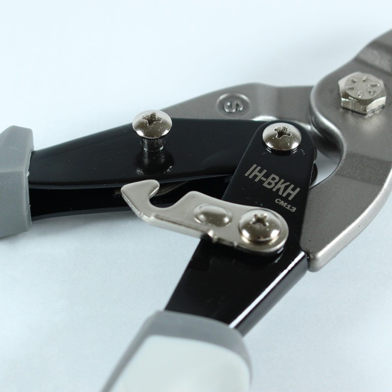 - Features: The blade is made with chrome molybdenum light for sharp cutting and durability. Double fulcrum construction allows you to cut with small force. Features a serrated blade to keep material from escaping. Can be cut straight and loose curves. Spring-loaded handle for improved work Simply squeeze the handle to release the lock so you can operate it with one hand
